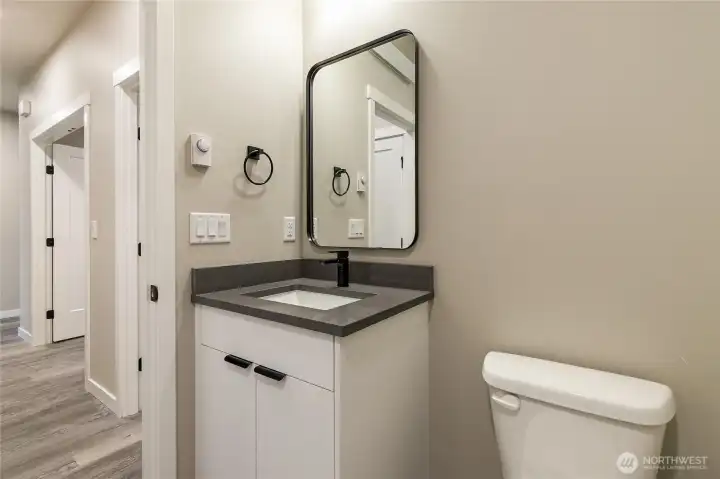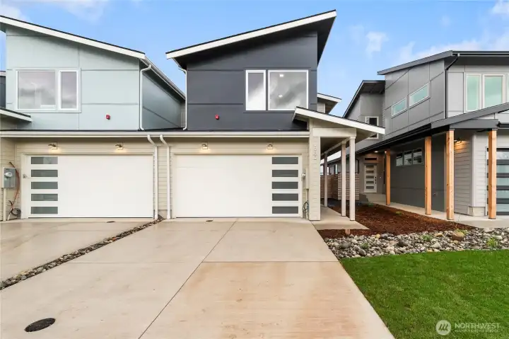 Welcome to Northview 2 in Cordata, Bellingham's premier solar home community! This stunning 3-bedroom, 2-story contemporary home features an open and spacious floorplan, vaulted ceilings, and large windows that fill the space with natural light. Enjoy a custom kitchen with sleek quartz countertops, a primary suite with an ensuite boasting a double sink and walk-in closet, and a main-level bedroom for added convenience. Designed with sustainability in mind, this home includes efficient mini-split heat pumps with A/C, a large covered patio, a gas fireplace, and EV charger prewiring. Take in mountain and golf course views. Includes 2-car garage. Your dream home awaits—secure yours today!