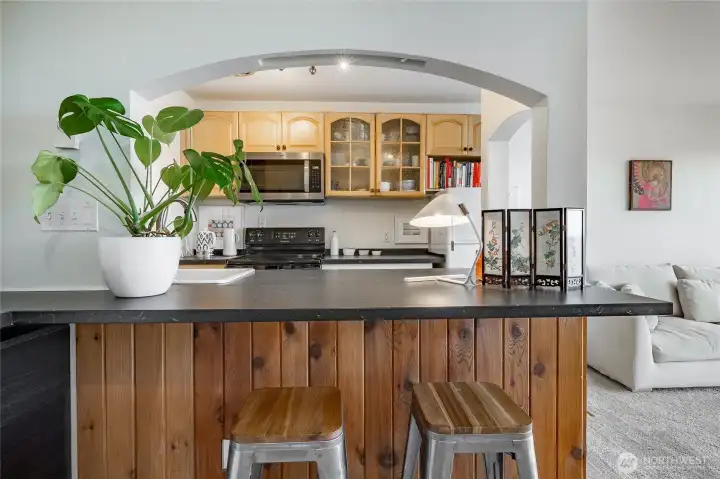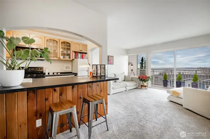 Nestled high on the hill overlooking Bellingham Bay, this tranquil setting awaits. Enjoy the sea breezes & nightly sunsets from your private balcony. Walk everywhere; downtown shops/restaurants, parks & WWU. This home offers a cozy atmosphere w/all the amenities you’ll need. Step into this special place w/an open floorplan concept that creates great space while lending it to easy entertaining. Tons of natural light flood through the floor to ceiling NW windows. The galley kitchen w/eating bar provides space for friends to sit & chat while you cook. A good-sized bedroom w/full bath is tucked away from the main living space. Hall closet has W/D hookup. There is 1 designated parking space, guest parking, community storage & laundry room.