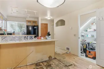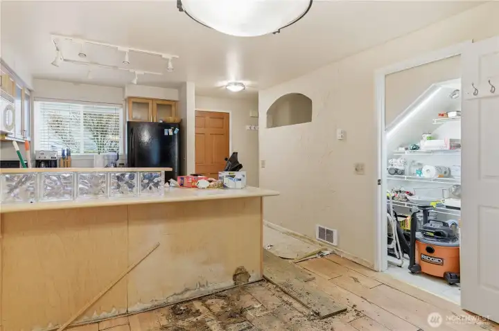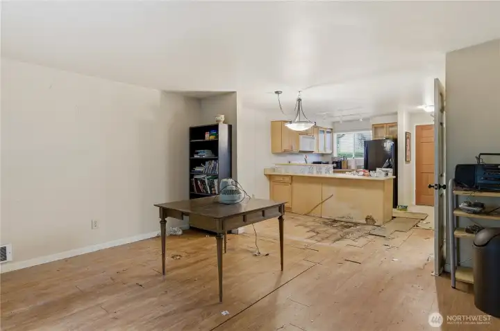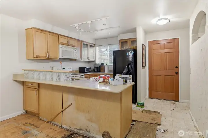 FIXER! FIXER! Tucked back off Edmonds Way and surrounded by wooded greenery, this townhome-style condo offers strong potential for investors to add value. Main floor has extensive floor damage. Ideal for fix-and-flip, rental, or customizing to your taste. The private, covered entry opens to a spacious living and dining area with a cozy fireplace and patio—perfect for summer evenings. The kitchen offers abundant storage, including a walk-in pantry. Upstairs features two generous bedrooms, full bath, and a full sized washer/dryer. Convenient Edmonds location near shopping, dining, schools, commuter routes, and downtown. Assigned parking, storage, new roof (2020), strong HOA, & no rental cap make this compelling. Pre-Inspected.