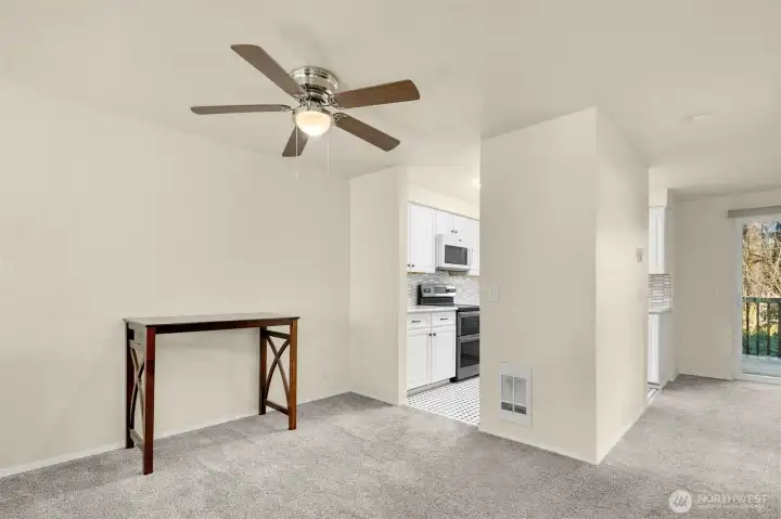 Rare and affordable Mukilteo townhome; 2.75% assumable loan available! Prime location in a quiet, tucked-away community with a welcoming neighborhood feel. Step into a bright living room with 10-ft soaring ceilings, updated windows and a cozy wood-burning fireplace. Detached garage and reserved parking space conveniently located right out front. Updated kitchen features quartz countertops, large sink, and double oven. Versatile den/office space and newer hot water tank. Slider opens to a large private deck w/storage, overlooking HOA-maintained grounds and a peaceful greenbelt. Two spacious primary bedrooms, each with a full en-suite bath. Near train station, bus lines, freeway access, beach, dining, shopping, and more. Great for Investors.