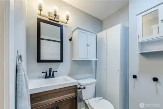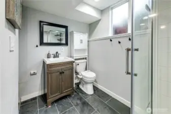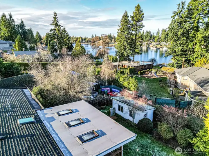 Beautifully updated view property overlooking Lake Serene! Private dock & beach rights shared with only 3 homes! Enjoy a glass of wine or BBQ year-round from covered deck while gazing out on the water. Take short stroll down private lane to swim off dock or paddle board in lake! Entertainers dream w/ remodeled kitchen w/ quartz counters & huge island. Gorgeous refinished hardwoods. Separate kitchen downstairs & 2 fully finished studios w/ power provides flexibility for all your needs - work from home, multi-generational living, or rental income! Stay cool year-round with A/C. Wired for generator & EV charger. Fully fenced landscaped yard & RV parking. Private outdoor shower w/ hot water. Excellent Mukilteo Schools. Pre-inspection attached.