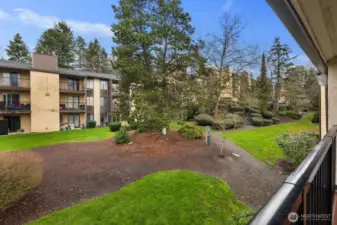 Tucked away at the top of Kingsgate Ridge Manor, this rarely available three-bedroom, end-unit condo offers privacy, light, and a sense of calm the moment you step inside. Nearly 1,000 square feet unfold effortlessly — from the inviting living room anchored by a wood-burning fireplace to the thoughtfully designed kitchen that opens into the dining space. The primary bedroom features a walk-in closet, while a private covered balcony overlooks manicured grounds below. In-unit laundry, dedicated parking just steps from your door, and no rental cap add everyday ease. Moments to Kirkland, I-405, and Northshore schools — a home that feels quietly well-positioned.