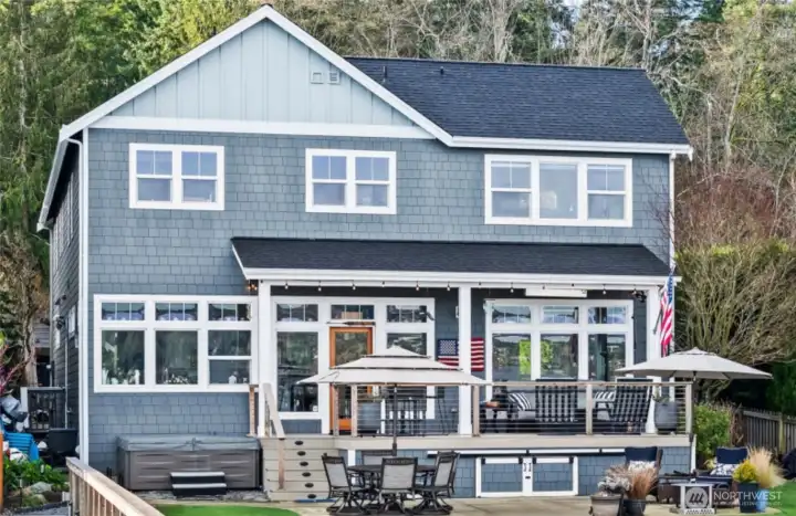 Experience an elevated waterfront setting on Fox Island, where Puget Sound feels seamlessly connected to everyday living. No-bank beach access with Tidelands and a shared 175’ dock make time on the water effortless—whether boating, kayaking, paddle boarding, or simply enjoying the natural cadence of the tide. Frequent wildlife sightings and expansive views across Hale Passage and Wollochet Bay create a backdrop that is both peaceful and captivating. The home embodies refined coastal comfort with smooth indoor-outdoor flow for entertaining, highlighted by a generous deck and patio designed for gathering and quiet relaxation. A detached home office offers a secluded space for remote work or creative use, while the spacious lot provides privacy and room for storage or future potential. Inside, thoughtful design blends elegance with livability, centered around a primary suite that serves as a serene retreat with stunning water views. Two additional upper-level rooms provide versatility, along with a media and game room suited for relaxed evenings at home. Located just minutes from Gig Harbor, this Fox Island property presents timeless waterfront living with understated charm.