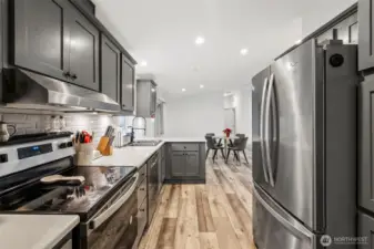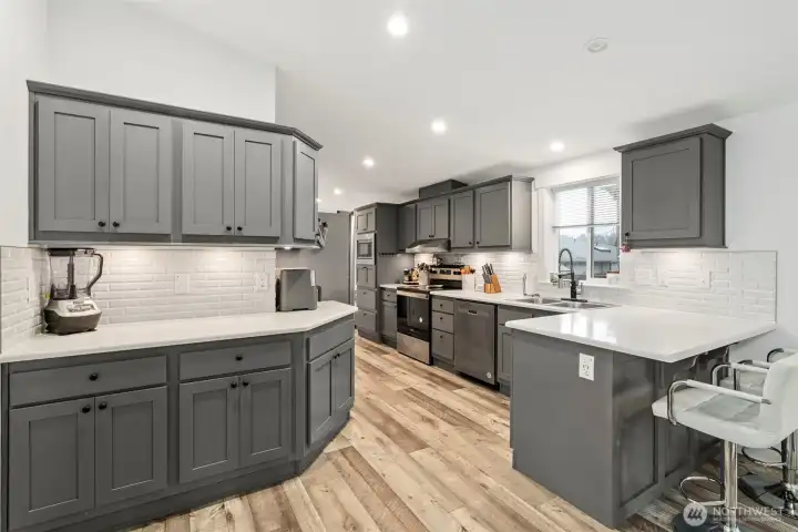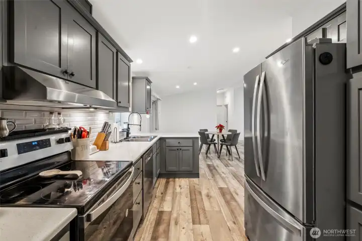 Easy single-level living in this beautiful home in a desirable 55+ community in Lacey. The open floor plan features vaulted ceilings, abundant natural light, & seamless flow between living, dining, & kitchen. The kitchen offers quartz counters, ss appliances, ample cabinetry, & durable luxury vinyl plank flooring. The primary includes spa-inspired bath w/ walk-in tile shower, with 2 more beds & a full bath provide flexibility for guests. A dedicated laundry room & attached garage add everyday convenience. Stay cool in the summer with AC. Enjoy outdoor living under the covered patio w/ gazebo & low-maintenance yard. Conveniently located near shopping, dining, medical services, & a quick commute to JBLM.