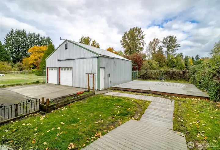 Charming 3 Bedroom 1.75 Bath Rambler located on a private dead-end street. Enjoy the light filled open concept living room with a cozy pellet fireplace, dining room & 9 ft ceilings throughout. The expansive kitchen offers granite counters, pantry & eating space—ideal for gatherings or everyday living. The spacious primary suite is privately separated from the other bedrooms & includes a ¾ bath & walk-in closet. Additional bedrooms also include walk in closets. Step outside to a covered wrap-around Trex deck for year-round enjoyment. A detached 1,088 sq ft SHOP provides space for storage or hobbies. Additional features include a ramp, french doors, gated driveway, fenced backyard & no HOA. Located 5 minutes from I-5 & JBLM. Move in Ready!