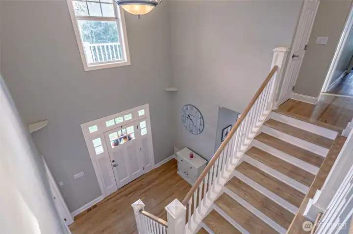 Beautiful, well maintained home with an amazing view of Mt. Rainier, now available in Enumclaw. This 2,660 sq ft, custom built home sits on just shy of an acre of beautiful land with mature landscaping. Inside you will find both levels have 9' ceilings, a formal dining room/office, and a kitchen with eating space opening to a living room with a fireplace and newer paint. Additional features include a built in vacuum system, remodeled bathroom, French doors leading to a large back patio, and an exceptionally clean crawlspace with new vapor barrier. The spacious primary bedroom has a big round top window with a great view and access to the 2nd floor balcony. The 5 piece bathroom includes a jetted tub and walk in closet. Upper floor Bonus/4th bedroom. The outside of the home has newer exterior paint, lifetime concrete tile roof, cement planked siding, large 2nd story balcony, and ample driveway space. Inside the 2 car garage with newer garage doors, there is a EV charger, separate power panel for a generator, the furnace, and a tankless water heater. The spacious yard has an appealing outbuilding, a large back patio, and a double fenced backyard. This home is also equipped with a heat pump for comfortable living all year-round. All of this and NO HOA! You're going to fall in love with this home!