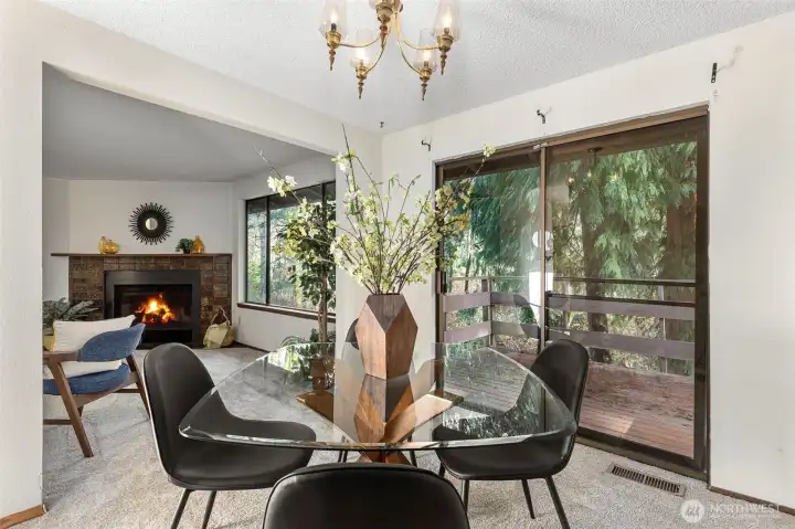 Tucked away at the end of a dead-end road in a cul-de-sac backed up to a serene, treed setting! Brand NEW carpet/pad were just installed throughout entire house! All 3 bedrooms AND the office w/ a closet are located on the main floor. Primary Bedroom Suite offers an expansive walk-in closet & a 3/4 Bathroom. Nice sized deck off of the dining room overlooks the back yard & forest area. Walk-in kitchen pantry. Wood burning corner-set fireplace in the main floor living room. Oversized side entrance garage w/ a lengthy driveway allows for ample parking. Lots of storage & closet spaces. Approximately 318 Sq Ft (20.5 x 15.5) finished Bonus Room in basement w/ sliding glass door to back yard/patio. Garden/Tool closet in back yard under deck.