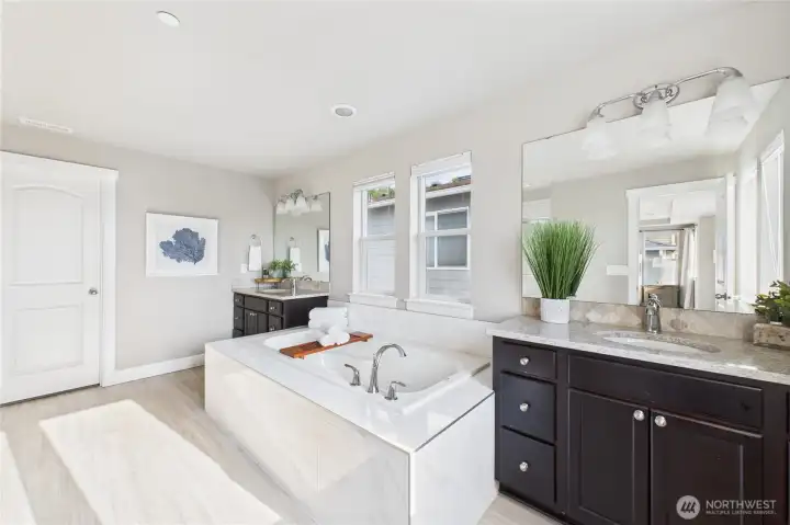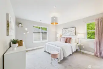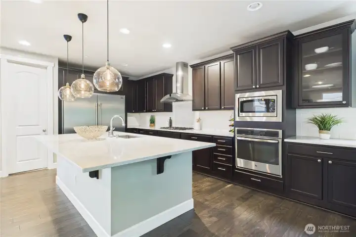 This light-filled 4-bedroom, 2.5-bath home blends comfort and everyday elegance. The open great room connects seamlessly to a chef-inspired kitchen featuring an oversized quartz island, stainless steel appliances, gas range, and walk-in pantry—perfect for hosting or daily living. A main-level bedroom or office with French doors adds flexibility. Upstairs, the spacious primary suite offers a large walk-in closet, recessed ceiling, and spa-style bath, along with two additional bedrooms, a full bath, and a generous loft ideal for a media room or flex space. Enjoy a landscaped backyard with patio, a 2-car garage, and central A/C. Close to parks, trails, top-rated schools, and easy access to Seattle and the Eastside.