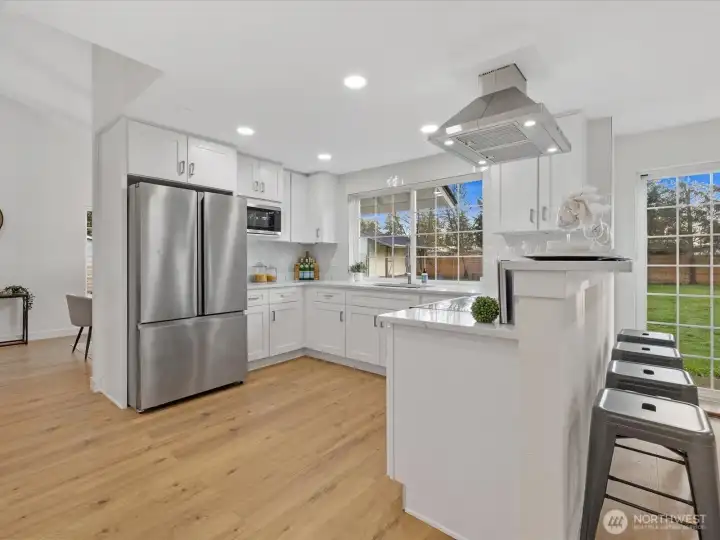 [FULLY RENOVATED] & move-in ready! This beautiful home sits on a .44 acre lot on a quiet dead-end street, offering privacy while remaining close to schools & shopping. New siding & roof pair with fresh interior and exterior paint for a crisp, modern feel. Enter through the covered porch to the light-filled great room featuring soaring cathedral ceilings & cozy wood-burning fireplace. New luxury vinyl plank flooring, millwork, doors, & vanities-tasteful updates around every corner. The chef’s kitchen shines with stainless steel appliances, quartz counters, & a versatile multi-functional nook. Enjoy year-round comfort with Air Conditioning & a generously sized, fully fenced backyard ideal for gardening, entertaining, pets, or play. MUST SEE!!
