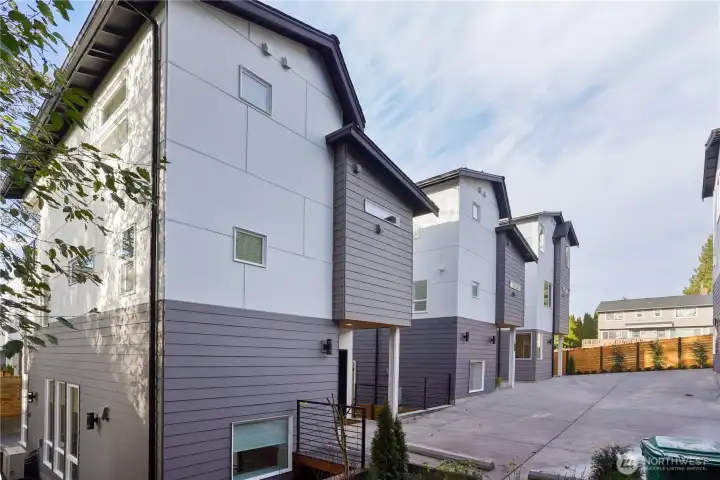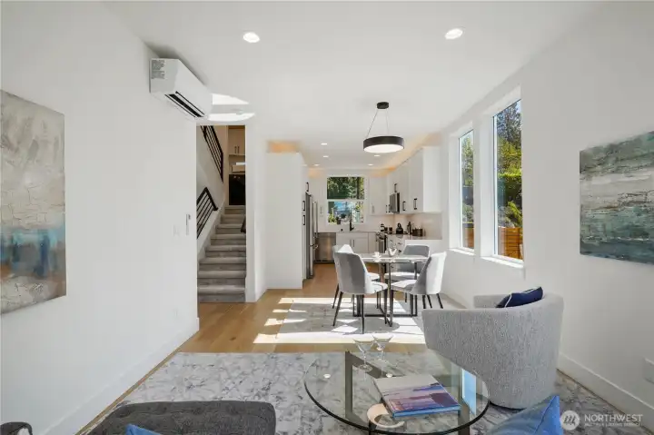 Exquisite living in Highland Park, West Seattle! This stunning 2025-built 3-bd, 2.5-ba home, one of four unique units, radiates luxury. The chef's kitchen dazzles with custom cabinets, quartz countertops, and a hallway pantry. Light-filled open-concept main floor boasts vaulted ceilings, high-end engineered hardwood, and custom lighting. The primary suite stuns with a private deck, a 5-piece spa bath with heated floors, soaker tub, dual rain-head shower, designer tile, double vanity, and custom closet. Two bedrooms, full bath, and family room downstairs; utility room and powder bath add ease. Ductless mini-splits in every room ensure comfort. Immaculate exterior with lush landscaping, fencing, and an entrance deck. EV-ready parking, no HOA