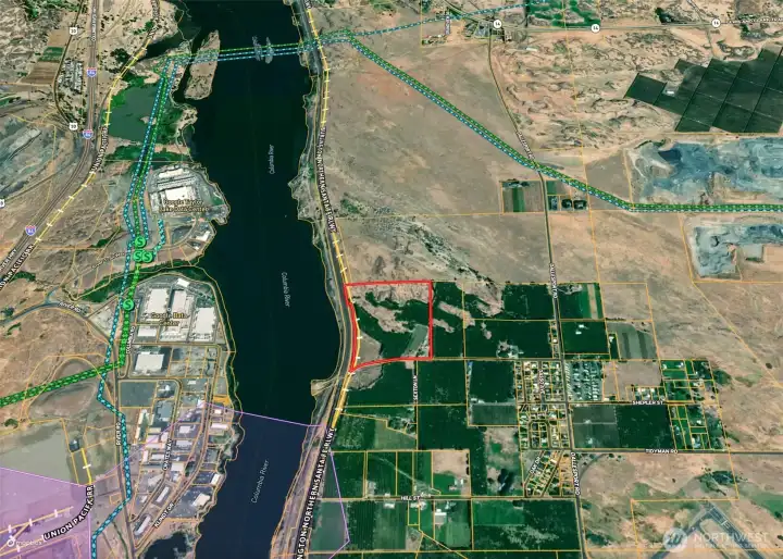 Across from the Google AI Data Center, this property offers panoramic views of the Columbia River with an established orchard. Zoning of R1 may work well for development. Site may also work well for AI data center, technology, or manufacturing use, pending buyer's zoning approval based on specific needs. Home is not included, only seller's interest in the contract of sale on the home. The orchard is leased. This is an incredible view property! (BTVAD).