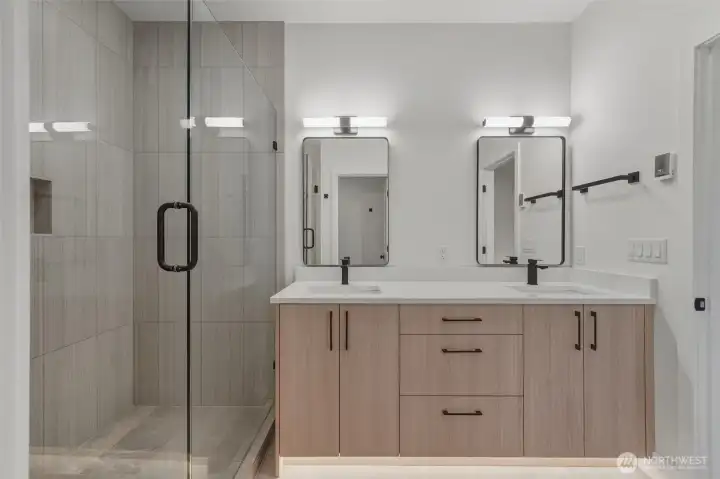 Brand new luxury living awaits you in this brand new infill home with custom touches throughout. This 3 bed 2.5 bath home features wide plank flooring continuing up the stairs and throughout the hallways, custom cabinets, a flowing upscale kitchen with and upgraded Bosch appliance package, great light and a very spacious main living area with southern exposure. The main floor primary suite features heated bathroom floors, automatic floor lighting, a very custom full tile shower and full A/C for year round comfort. Located on Puget hill, this home was built to a high standard including WesTek windows, a super high garage with sprinter van height doors, all just minutes from Whole Foods and Galbraith mountain's extensive trail system.
