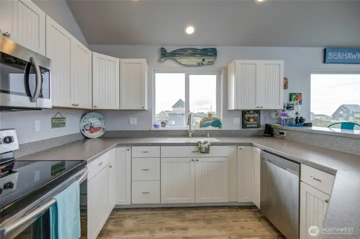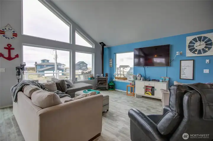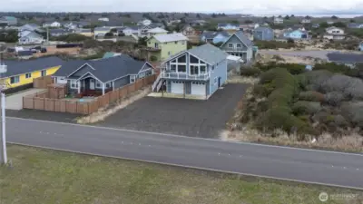 NEWER Ocean Shores VIEW home directly across the street from the beach! Thoughtfully designed and fully furnished 3-bedroom, 3-bathroom home easily sleeps 14-16! Upper level includes 2 bedrooms/2 full bathrooms, great room with vaulted ceiling, kitchen with bar seating and separate built-in dining area, gas fireplace and access to deck with panoramic views! Lower-level features utility room, bedroom and full bathroom, bonus sleeping area and access to fully fenced back yard and oversized garage! Tons of storage for all your toys and lots of parking! Perfect for everyday living or a vacation property! Minutes to iconic downtown Ocean Shores!