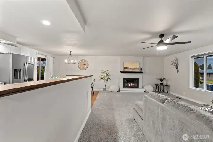 Just outside of town in a desirable, slow-paced neighborhood, this tastefully updated home offers 4 bedrooms, 2 bathrooms, 2 living rooms, and a dedicated office. The open kitchen and large windows fill the home with natural light, newer flooring and paint throughout. The main living area is cozy and inviting with a wood-burning fireplace. Lower level includes a wet bar with granite countertop, perfect for entertaining or additional living space. Situated on a large, irrigated lot with a fenced backyard and no restrictions, the property features beautiful views from the back deck, parking for an RV or trailer, 2-car garage, chicken coop, and playset. The home has a 2-bedroom septic system, newer roof, some updated windows, pre-inspected.