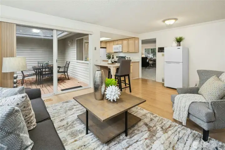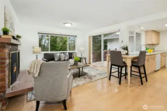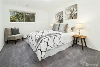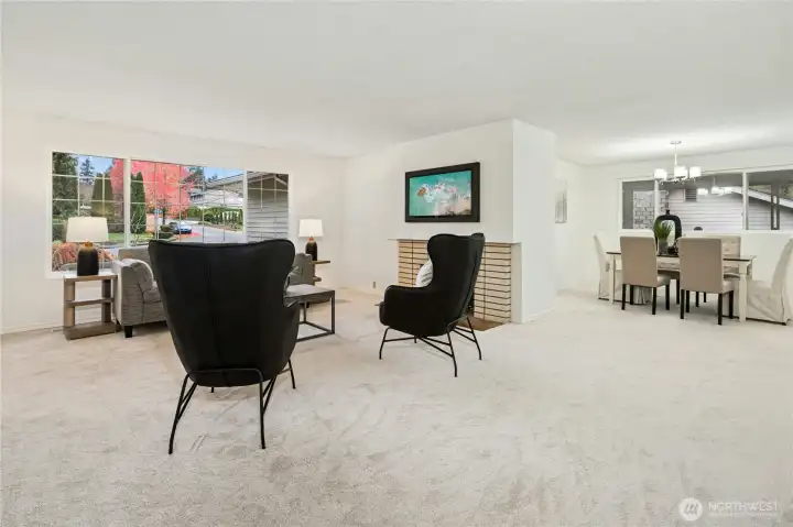 Welcome to a beautifully updated daylight rambler with remarkable space and flexibility. Newly updated with fresh paint and carpet, this home feels bright and inviting throughout. The upper level features four bedrooms, two baths, a large living room, and an open kitchen and eating area with peaceful views. Both floors connect to the expansive composite deck overlooking a private greenbelt—perfect for relaxing or entertaining. Downstairs adds two more bedrooms, a spacious laundry room, another bathroom, endless storage, and a fantastic oversized bonus room plus a flex room ideal for an office, gym, future kitchenette, or more. Just min to endless parks & trails, Microsoft, DT Bell & Red. Top-tier Bellevue ISD including Interlake HS.