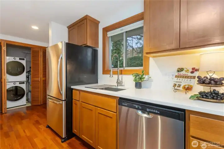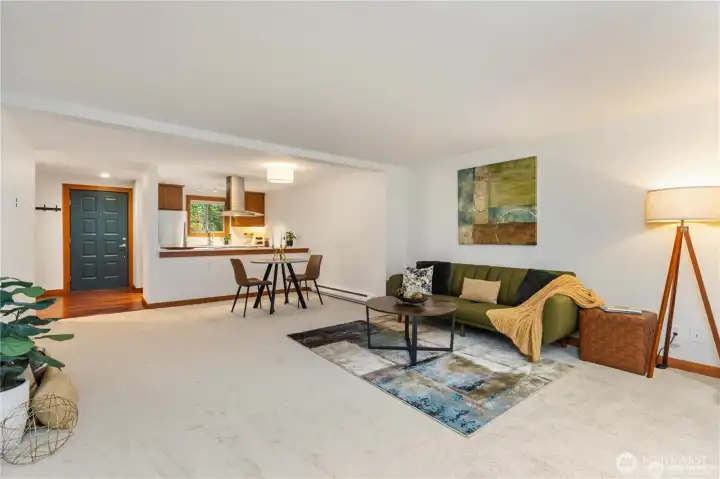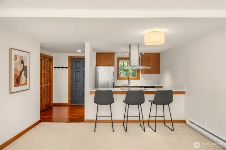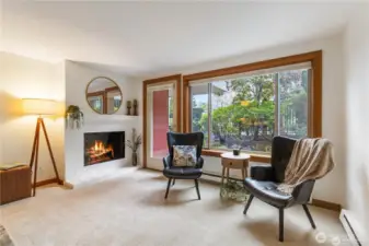 Step into beautifully updated corner unit in the desirable Taylor Anne Condominium in the heart of Queen Anne. Ground-floor home features a spacious one-bedroom layout with seamless indoor-outdoor living, thanks to a private patio that is perfect for relaxing or entertaining. The modern kitchen features stainless steel appliances, quartz countertops, and top-down/bottom-up shades, all complemented by a charming wood-burning fireplace. Additional updates include a built-in dresser, new LG washer and dryer, and plush new luxury carpet in the living room. Enjoy secure gated parking and a dedicated storage space. Ideally located near Seattle Center and South Lake Union, with endless options for dining and shopping. No pet restrictions.