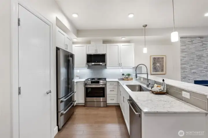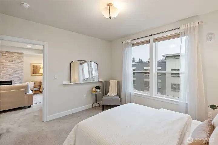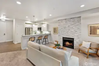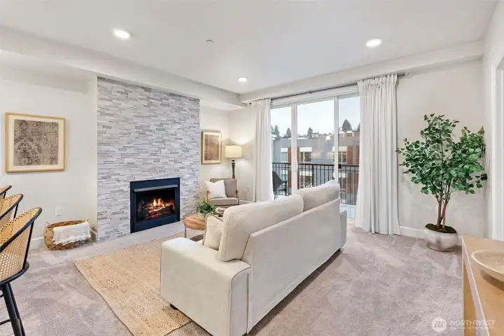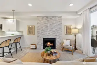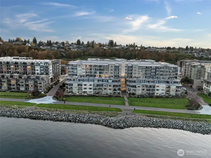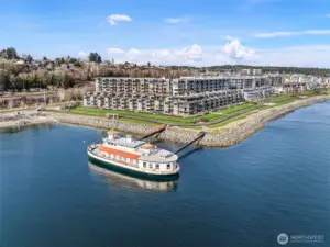 Experience the best of Point Ruston living-where the waterfront, dining, shopping, & entertainment are right at your fingertips! Relax on your private top floor balcony & enjoy the sights & sounds or head inside to a light-filled living room with a cozy gas fireplace. The kitchen features quartz countertop, stainless steel appliances, & comfortable bar seating-perfect for everyday use & hosting. The generous primary suite offers an ensuite bath & large walk-in closet. A 2nd bedroom sits adjacent to a full bath & in-unit laundry for added convenience. Amenities include a courtyard w/ putting green & bocce ball, plus expansive indoor/outdoor community areas ideal for larger gatherings. Storage unit + 2 garage parking spaces included.