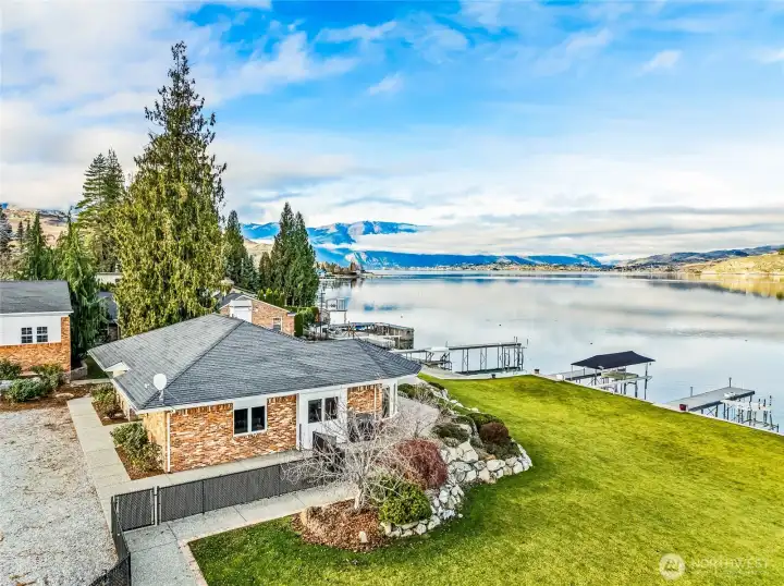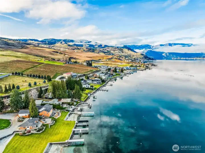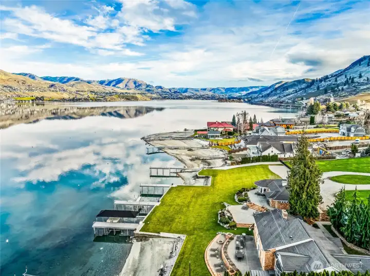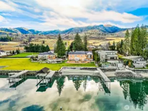 A once-in-a-lifetime estate opportunity on Lake Chelan’s coveted waterfront. This extraordinary offering includes five contiguous parcels with nearly 300 feet of pristine shoreline, five private docks, and multiple new boat lifts, new seawalls, and a private boat launch—creating an unparalleled setting for luxury lakefront living. The property features two existing homes, providing immediate use, rental flexibility, or guest accommodations, along with a large additional building lot offering exceptional potential for expansion or redevelopment. Gently sloping, manicured grounds lead to the water, enhancing both usability and scenic beauty. Located just 3 miles from downtown Chelan and within walking distance to award-winning wineries.