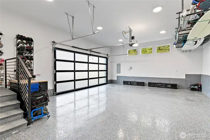 Experience refined Northwest living in this custom contemporary home that truly feels better than new in a wonderful golf community. From the moment you step through striking glass double doors, you’re welcomed by an impressive entry anchored by a dramatic floor-to-ceiling stone fireplace, a stunning focal point that sets the tone for the entire home. Designed for both comfort & style, the light-filled open floor plan showcases expansive windows in every room, bringing in natural light & serene greenbelt views. Main level features a luxurious primary suite & private den, offering flexibility for work or relaxation. Gourmet kitchen is beautifully appointed w/ custom cabinetry, elevated finishes & premium appliances, seamlessly flowing into great room & out to a covered deck, perfect for year-round entertaining. Thoughtful upgrades continue throughout, including heated bathroom floors, heated toilets, contemporary backlit built-ins & custom window coverings. Upstairs, a spacious bonus room w/ stone fireplace provides ideal gathering space. Finished lower level/basement offers versatility for a home gym or media room. Practical luxury shines w/ a well-designed mudroom off the garage w/ built-in storage, an oversized utility room w/ abundant cabinetry & counter space, epoxy-finished garage floors, sprinkler system & additional parking. Modern design, exceptional upgrades & a peaceful setting. This move-in-ready home offers comfort, functionality & elevated style at every turn.