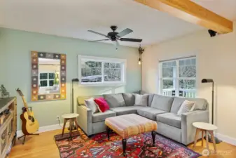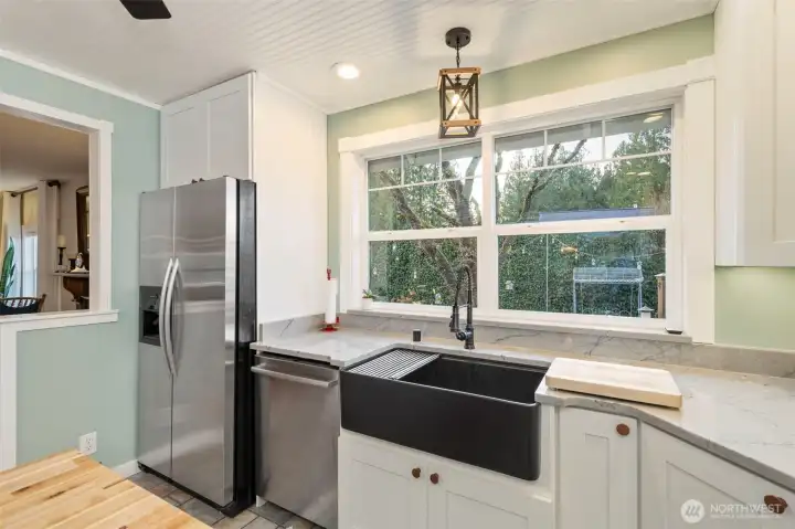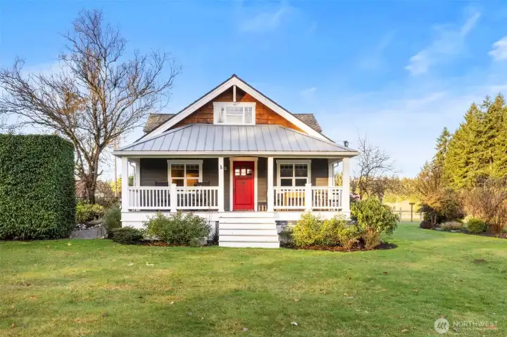 Iconic 1926 farmhouse w/new plumbing, electrical, windows & more. Exposed beams, built ins, antique lighting. Fir floors, impressive floating staircase. Kitchen w/stainless appliances, quartz counters, farmhouse sink, beadboard ceilings, center island. Primary suite w/private bath, walk in closet, dressing area. Home office boasts a bird’s eye view of the idyllic property. Guest bed tucked away downstairs. Oversized detached garage, 12 X 15 shed w/power, 6 X 12 greenhouse. Rustic 20 X 30 barn. Portable 8 X 10 livestock pen, 6 X 8 chicken coop, 3 fully fenced/cross fenced pastures. 16 X 30 hoop house. Solar panels create very low-cost energy bills. Minutes from downtown Kingston, & ferries. Welcome home!