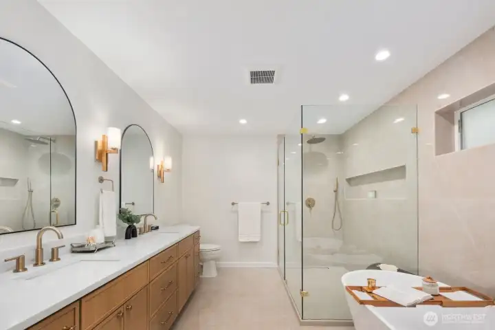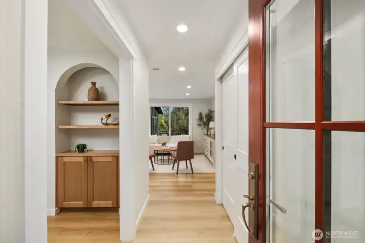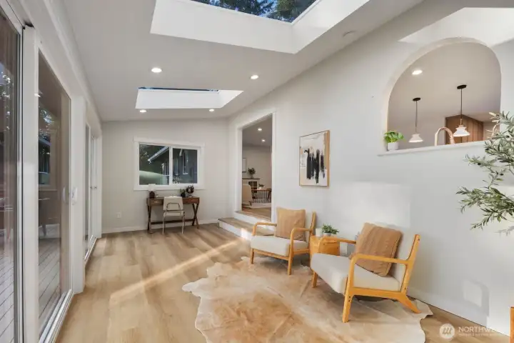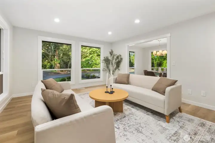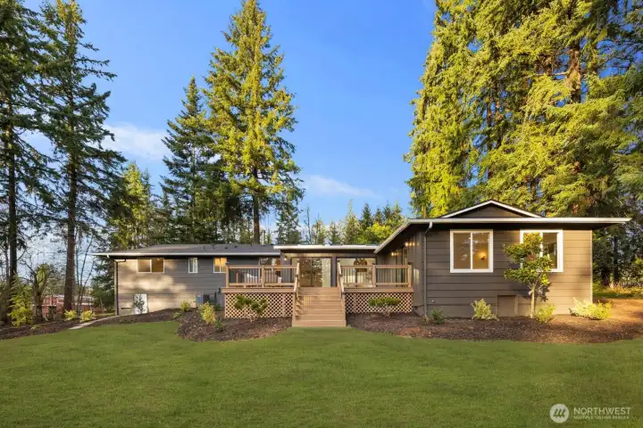 Set behind a veil of privacy on 2.55 serene acres, this fully remodeled 4-bedroom, 3-bath residence is a refined retreat where luxury and nature exist in perfect harmony. The home is anchored by a stunning chef’s kitchen with new custom cabinetry and an oversized quartz island, flowing seamlessly into formal dining and living spaces ideal for elegant gatherings. Two expansive primary suites, spa-like bathrooms, spacious bedrooms, and built-in closets offer comfort at every turn. Heated tile floors and rich LVP elevate the interiors, while abundant windows flood the home with natural light. Outdoors, enjoy manicured landscaping, mature fruit trees, a generous deck, RV parking, and a tranquil setting where nature truly feels at your doorstep.