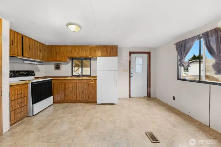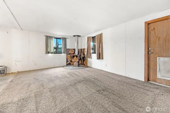 Welcome to Cherry Hill Mobile Estates, a 55+ community offering a great opportunity to make a home your own. This 2 bedroom, 1 bathroom double-wide features an open kitchen and living area with a cozy wood-burning fireplace. Enjoy a covered deck, large backyard, and covered carport, plus extra storage space. With plenty of potential and room for personal touches, this fixer is ready for its next owner’s vision. Newer roof. Seller is unable to make repairs. Park approval required. Lot rent is $950/month and includes water, sewer, garbage, recycling, and yard waste. Priced to sell as is!