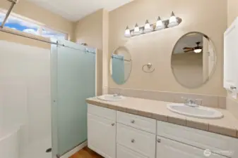 Welcome to this beautifully maintained one-level home in the desirable 55+ Jubilee community of Lacey. Featuring 2 bedrooms, 2 baths with whisper quiet fans, plus a private office, this thoughtfully designed floor plan offers both comfort and functionality. The spacious living areas with crown molding include a large open kitchen with quartz countertops. Livingroom with gas fireplace TV’s and Bose surround sound stay. Upgrades abound with Solar panels for low power costs and newer roof. Enjoy your backyard retreat with mature landscaping with irrigation and drip system. A two car garage provides ample parking and overhead storage with Coleman work bench and cabinets, Hoist by Gorilla in garage as well. Also security system. A/C.