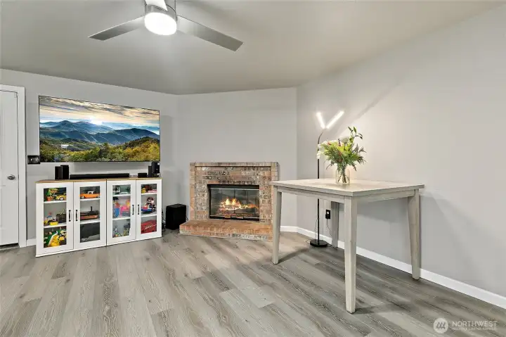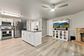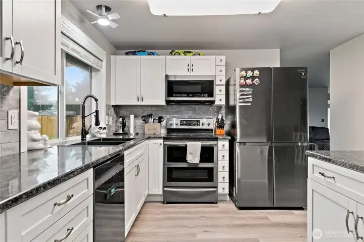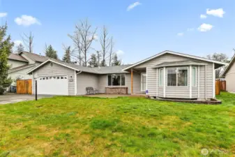 Beautifully refreshed home with a fully renovated interior, including updated appliances and modern finishes throughout. Thoughtful one-level layout offers three bedrooms, a bright living room, and a comfortable family room with a cozy fireplace open to the kitchen. A dining nook overlooks the sun-filled, fully fenced backyard—ideal for everyday enjoyment. Luxury vinyl plank flooring flows throughout, complemented by stainless steel appliances. The spacious primary suite features a walk-in closet and an attached ¾ bath, while two additional bedrooms share a full bath. Enjoy outdoor living on the covered patio and the convenience of an attached two-car garage. This move-in ready property blends style, function, and comfort on a generous lot.