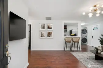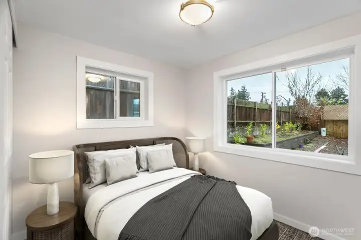 Charming Renton Highlands rambler, freshly updated & turnkey! Fully remodeled spa-like bathroom w/ soaking tub, heated floors, forest green vanity, oversized medicine cabinet, Bluetooth speaker/vent, & gold fixtures steals the show. Light-filled living room w/ starburst-style light opens into kitchen w/ breakfast bar. Kitchen has stainless appliances, gas range & stacked washer/dryer. Recent upgrades: new 2025 gas furnace, new interior/exterior paint & updated finishes. Low maintenance backyard w/ hot tub & new privacy landscaping. Detached garage w/ storage, carport & plenty of parking in front for up to 4 cars. Home also includes a generator w/ hookup & a tankless hot water heater for endless hot water & energy efficiency. Move-in ready!