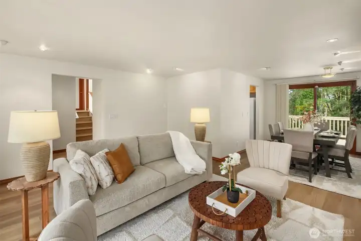 Attractive and thoughtfully updated, this home backs to a serene forest and community park, offering both privacy and natural beauty. 2025 updates including a new roof, freshly painted deck, new interior paint, and updated flooring—luxury vinyl plank in the main living areas and new carpet in the bedrooms. The kitchen offers ample cabinetry and a cozy breakfast nook, making everyday living easy and comfortable. The primary bedroom includes a walk-in closet and an updated ensuite bathroom. The generous lower-level family room offers versatile space for media room, playroom, or home office. The garage w/dedicated shop area and built-in cabinets for additional storage. Conveniently located near schools, a library, shopping, and restaurants.