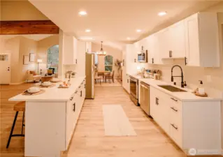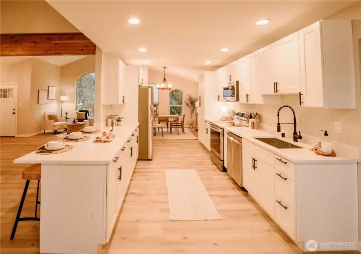 Set on a beautiful 1.74-acre lot, this stunning REMODELED RAMBLER offers the perfect blend of space, comfort, and style. The one-level HOME features 3 bedrooms and 2.5 baths with BRAND NEW floors, paint, doors and trim throughout. Enjoy the BRIGHT eat-in kitchen with new cabinets and Quartz countertops, SS appliances, a cozy casual dining nook, plus a gorgeous formal dining room filled with NATURAL LIGHT from picturesque windows. The OPEN-concept living room is warm and inviting, highlighted by a brick-surround pellet stove. Enjoy expansive OUTDOOR LIVING with a large, usable yard ideal for gardening, hobby farming, or RELAXING. Perfect for outdoor enthusiasts with privacy, SPACE, and peaceful country living, only a couple miles from town