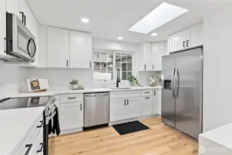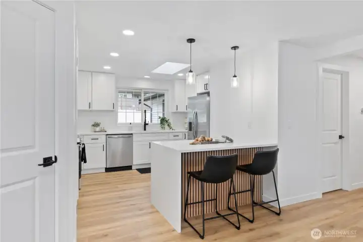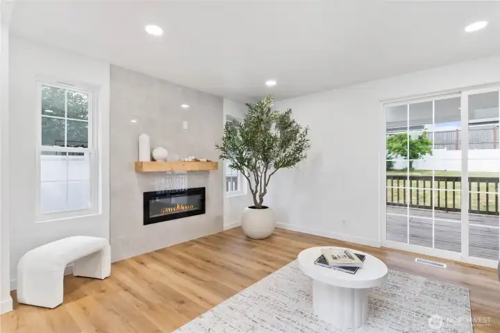 Welcome to your dream home! This beautifully remodeled 1,400 sq. ft. single-story residence offers modern elegance and comfort. Located on a peaceful cul-de-sac, it features 3 bedrooms, 2 bathrooms, and brand new roof.. The gourmet kitchen includes a quartz waterfall island, stylish backsplash, and new appliances. The primary bedroom has a chic barn door and en-suite bathroom. The open living area with a modern electric fireplace connects the living and family rooms. Enjoy the outdoor oasis with a covered deck and a new vinyl fence. The large lot offers plenty of space for activities. Situated on a dead-end street, this home is both serene and safe. Must See. Don't miss out this one won't last long! Schedule your showing today.