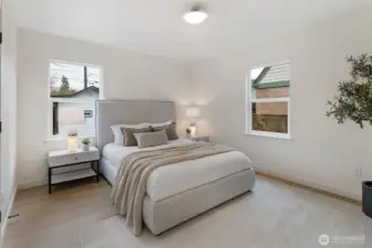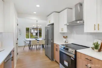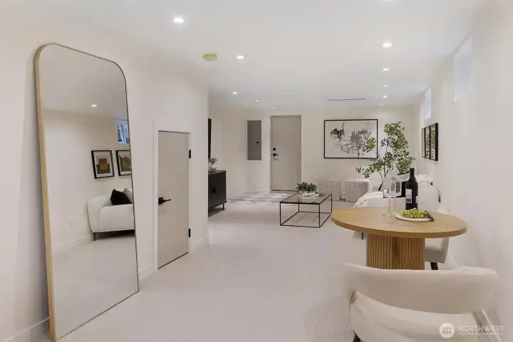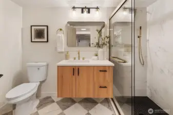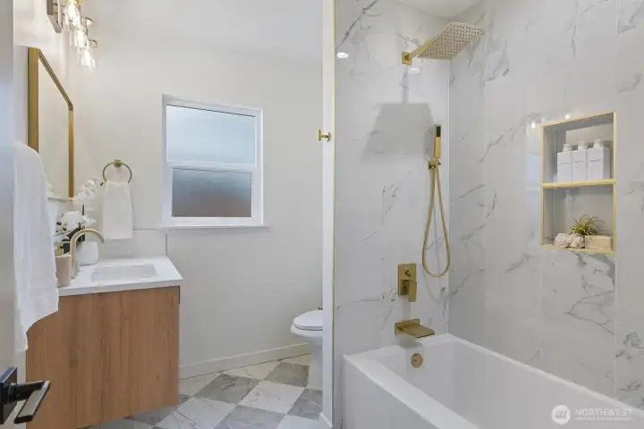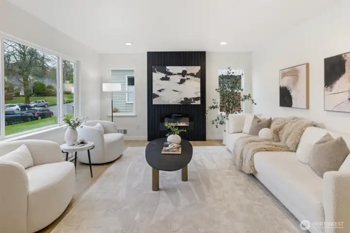 Nestled in Tacoma’s sought-after North End, this thoughtfully reimagined home blends warmth, function, & flexibility. Sun-filled living room features a striking electric fireplace, flowing into a formal dining room with deck access—perfect for entertaining or morning coffee. The galley kitchen offers two-tone cabinetry, tile backsplash, SS appl, & pantry storage. Main level includes two bedrooms & a stylish full bath with tile surround, floating vanity, & gold accents. Lower level provides a spacious rec room, two additional bedrooms, and a ¾ bath with walk-in rain shower. Separate exterior entrance allows for multi-gen or work-from-home living. Fully fenced level yard, detached garage, permitted rehab, & potential DADU (buyer to verify).
