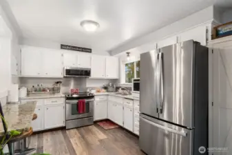 Nicely remodeled split entry close to shopping, schools, hospital, and commuting to Bremerton or Olympia. Remodeled kitchen, new life proof laminate flooring and newer carpets. Roof new in 2011. Very spacious master on lower level with separate full bath. Former rec room split by a temporary wall into two bonus rooms. 2 bedrooms on upper floor. Firepit and gazebo ready for a privacy wall or fence, storage area outside the fence and another shed in the back yard. Large fenced back yard ready for your furry friends. HOA only $88 per year.