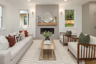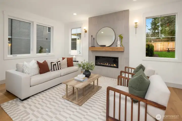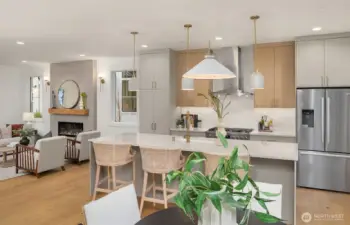 Welcome to your new home in Kirkland's North Rose Hill Neighborhood. Experience modern, detached new construction, featuring an open layout and a well-appointed kitchen offering great storage and spacious island. Main level features seamless living and dining plus a convenient powder room - perfect for guests. Fireplace with custom tile & mantle creates cozy & inviting living area. Upstairs, find a spacious second living room. Primary suite contains luxurious walk-in shower and dual vanity + walk-in closet. Two additional bedrooms and full bath complete the second level. Enjoy the ease of a private garage plus additional designated parking spot. Convenient access to downtown Kirkland, I-405, and 520 make this the perfect place to call home!