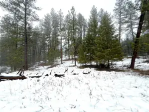 Beautiful land with easy year around access off of a county maintained road. Nice, large flat meadow ringed by Ponderosa Pines with plenty of room to nestle your home. Nice rolling terrain with power on the property.
