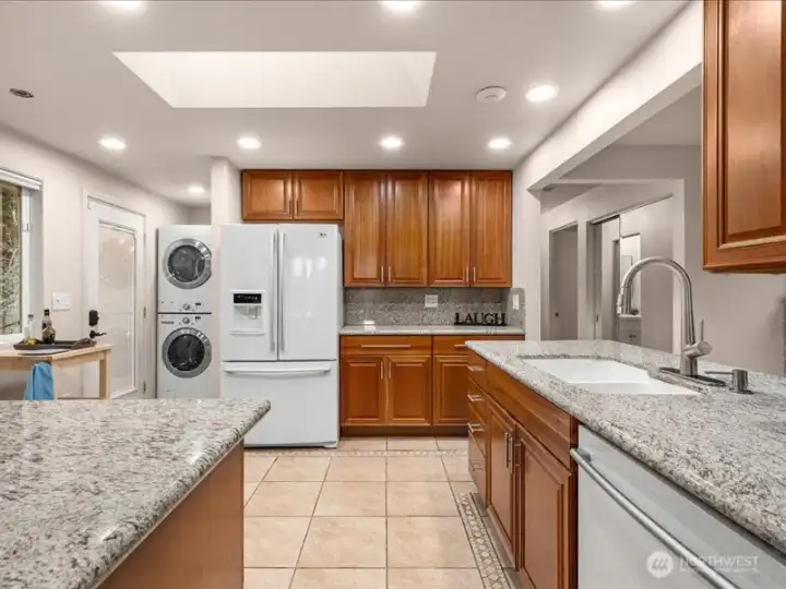 Updated one-story home in the sought-after Crown Hill neighborhood, offering skylights and sun-filled spaces that create comfortable, easy everyday living. Hardwood floors flow throughout. The open kitchen features wood cabinetry wrapped in granite, ample storage, and a large pantry, with adjacent living spaces that feel welcoming. Three bedrooms plus a large family room and dining room offer flexible flow for many lifestyles. The ensuite primary overlooks the backyard and includes a 3/4 bath and large mirrored closet. Step outside to a patio and fully fenced, level yard ideal for play, pets, gardening, or entertaining. Generous garage, driveway, and off-street parking. Roof replaced in 2022. A move-in-ready home where comfort truly shines.