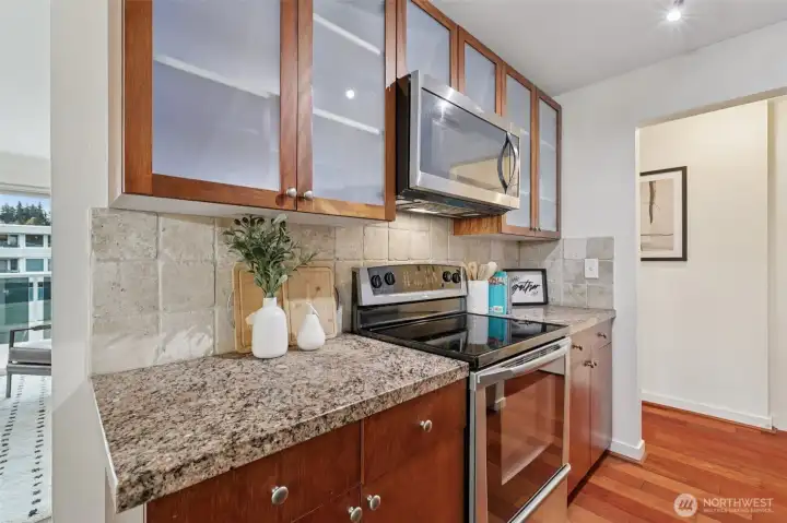 Turnkey condo 2 Bedrooms & 2 full baths. Easy stroll to Downtown Edmonds amenities; award winning restaurants, Edmonds Center for the Arts, Kingston Ferry, waterfront/beach & eclectic boutiques. One level condo with many upgrades; quality wood doors, granite counters, fresh paint, recent up/down blinds, tiled tub surrounds, real wood cabinetry, 1yr old LG washer/dryer tile & hardwood floors. Ext. deck to watch the annual Edmonds Car Show & 4th of July activities. Condo comes with convenient parking stall & storage room. Entire complex will have fresh interior paint & new carpet throughout by next February. Building has an elevator too. If you're looking for easy living at an affordable price, don't pass this sweet condo up!