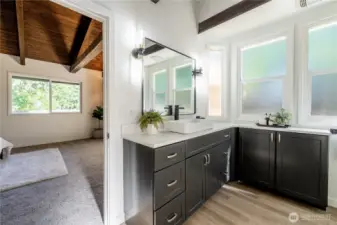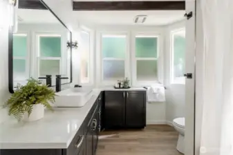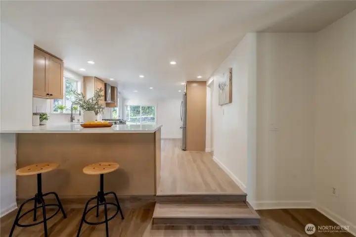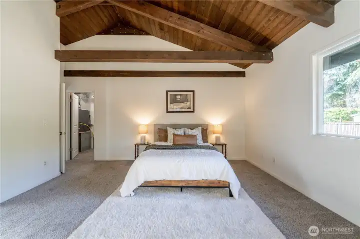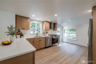 Need some space? This 1 level home has been beautifully updated & is located on a .42 acre lot w/ over 2100 sq ft of living space. Each bedroom has new carpets & paint. The bathrooms have new vanities, LVP flooring, ceramic sinks & LED lighting. The primary bedroom has a walk-in closet, vaulted ceilings, a slider to a covered deck. The updated kitchen has a new workstation sink, LED recessed lighting, new quartz counters, new cabinets & SS Appliances. Through the kitchen is the laundry, 3/4 bath & an office/bedroom space. The fully fenced backyard has a HUGE 546 sq ft deck, new 200 sq ft garage & large gate w/ driveway access. New insulation & vapor barrier. Tankless gas hot water, natural gas furnace, gas range, pellet stove, metal roof.