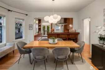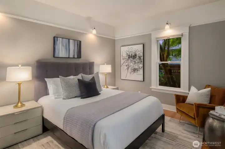 This classic Queen Anne 1905 Craftsman bungalow has been thoroughly renovated while maintaining period charm at every corner. Warm + inviting interior includes vintage detailing such as sleek oak hardwoods, high ceilings, stunning built-ins + brick fireplace. Open-concept space features formal bright dining room with expansive bay window. Highlights of upgraded chef’s kitchen are stainless appliances, Viking range, custom cherry cabinets, granite counters + eye-catching backsplash. Home office nook. Entertainers will love the easy access to deck overlooking fenced + thoughtfully landscaped backyard sanctuary. Upgraded bath + great lower-level space. Near parks, restaurants + public transit.