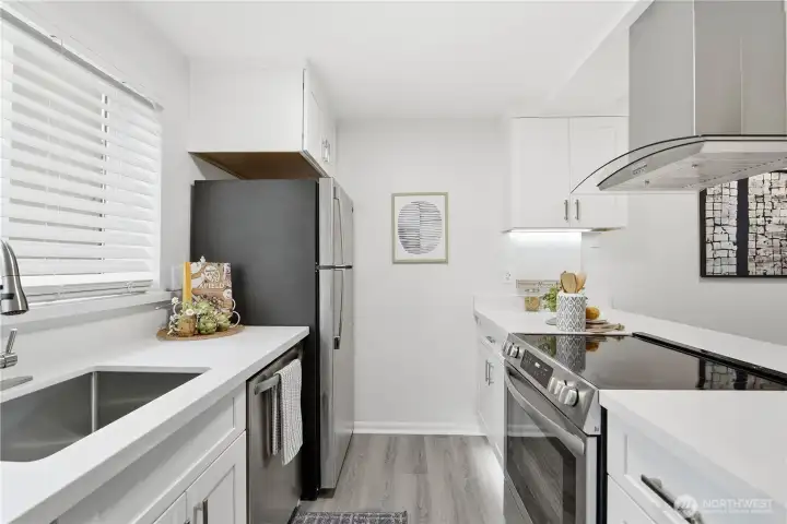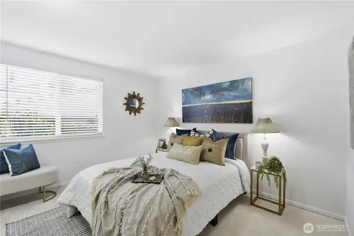 Welcome to Homestead Condominiums and this ground floor, well-maintained, move-in ready, 2-bedroom, 2-bathroom condo! Kitchen and bathrooms have been updated. Recently installed double pane windows, new carpet, water heater, and kitchen appliances. Enjoy the open concept kitchen-living room-dining room, cozy wood burning fireplace, and private covered patio with storage. The community's amenities include a swimming pool, indoor hot tub, clubhouse, and athletic court. Ample visitor parking and secure mailbox. Convenient location near I-5, Boeing, Paine Field, Park and Ride, restaurants, shopping, schools, and more. No rental cap or assessments.