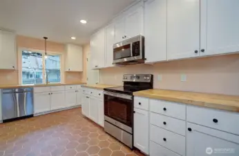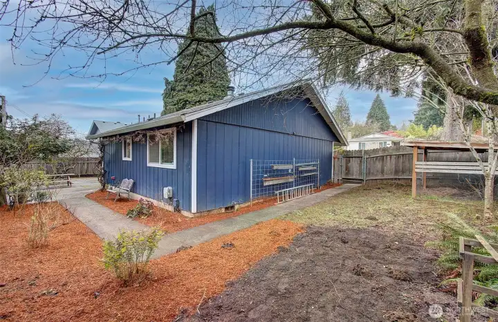Welcome to this charming home featuring two generously sized bedrooms and thoughtful updates throughout. The updated kitchen shines with crisp white cabinetry and numerous upgrades, including a built-in spice rack, pull-out drawers, broom closet, and more. Butcher block countertops, a walk-in pantry, and a clean, modern design create a space that flows seamlessly into the living area. Stay cozy year-round with a pellet stove that adds warmth and character. The extra-deep one-car garage offers a workbench and upper storage for added functionality. Outside, enjoy beautiful landscaping with producing grape vines and lush flowering plants, fully fenced yard ideal for pets, gardening, or entertaining, plus an additional storage shed. Conveniently located near local amenities and set within an established neighborhood, this move-in-ready home is full of appeal.
