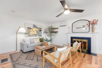 Beautiful mid-century brick home perched above the street with a thoughtfully designed circular floor plan. Stunning birch hardwood floors shine throughout the main level, leading to an updated spacious, modern kitchen with a statement island seating up to 8. A half flight up, 2 bedrooms & a full bath are privately positioned above the living spaces. The lower level features rare 9+-foot ceilings, a spacious rec room, primary bedroom, & bath. Enjoy a large, level backyard w/patio, garden space, & a bonus outbuilding ideal for a home office or extra storage. Upgrades include, new mini-splits,carpet, updated electrical, refinished hrdwd floors & interior paint. Ideal location, just minutes to the"Village", Discovery Park & downtown.