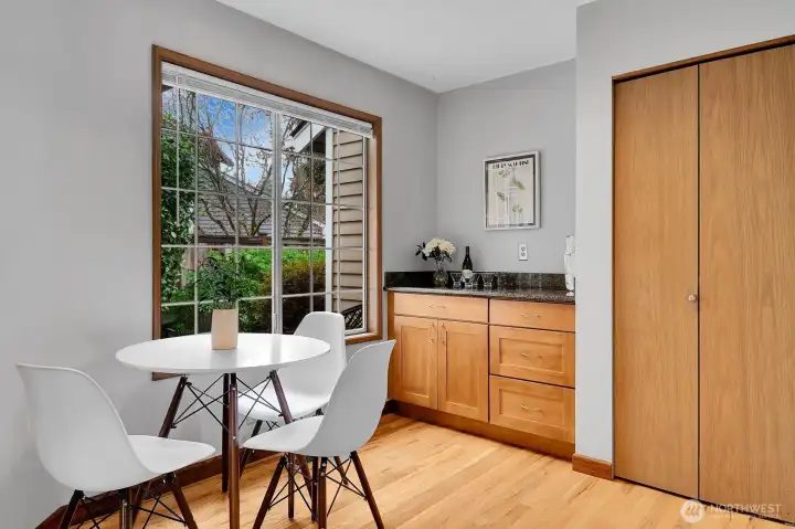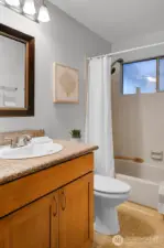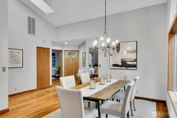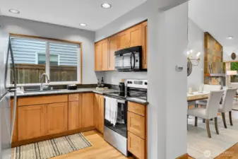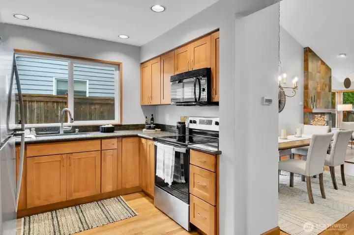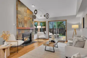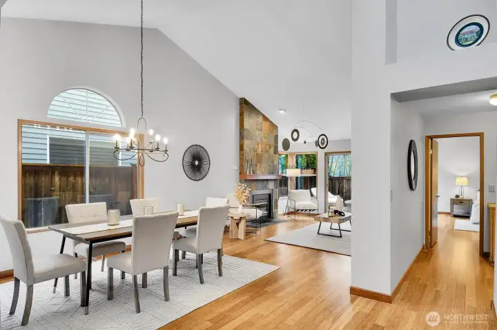 1-level living at its best. 3-bed turnkey rambler in Bothell’s desirable Morningside neighborhood. Artfully shaped cathedral ceilings & oversized windows create an airy light-filled feel. Warm hardwoods throughout. Gas fireplace w/ floor-to-ceiling slate tile surround. Open layout flows to deck & fully fenced low-maintenance turf backyard perfect for entertaining or play. Updated kitchen features cherry shaker-style cabs, granite, & pantry. Built-ins cabinets throughout the house and in the garage. Both baths updated. Primary Suite boasts ¾ en-suite w/ dual sinks, cherry shaker vanity & walk-in shower. LeafGuard gutters above deck (lifetime warranty). Covered entryway, 2-car garage & 2-car driveway pkg. Coveted Northshore School District.