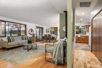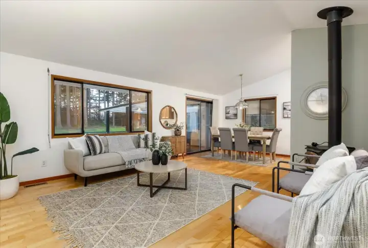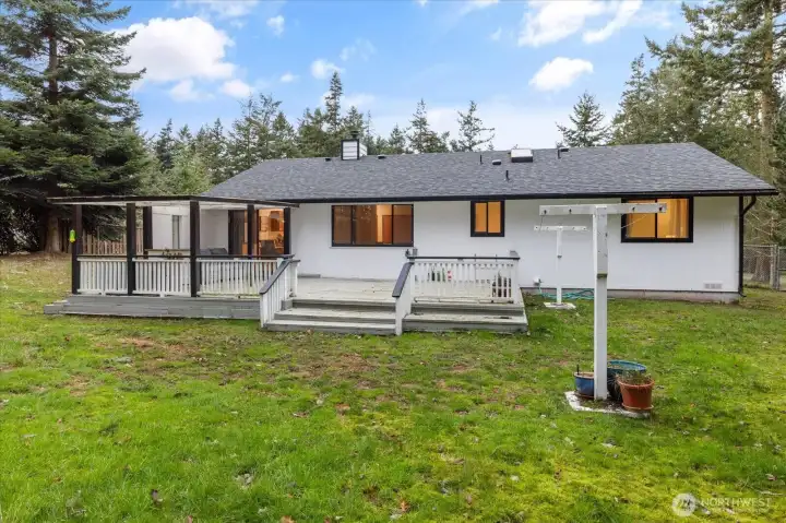 Privacy, property, & perfect setting can be found on a country lane conveniently tucked between Oak Harbor & Coupeville. Set on a nearly 1 acre lot, this is your opportunity to customize an idyllic landscape to reflect your current priorities & future goals. With 1214 square feet of single-story living space, highlights include: 3 bedrooms, 2 baths, & an expansive living room with hardwood floors, cozy fireplace & double paned windows that beautifully frame the bucolic setting. The kitchen is light and bright—with ample storage & seamless access to both the versatile dining area & oversized deck! What else? A NEWER roof, an efficient heat pump providing year round comfort & a fully fenced, level, park-like yard. When you add in the 2-car garage plus an additional shop/storage space, tons of paved parking & more? Get settled on the patio & pause...to soak up the sound of friends, nature, & being home...