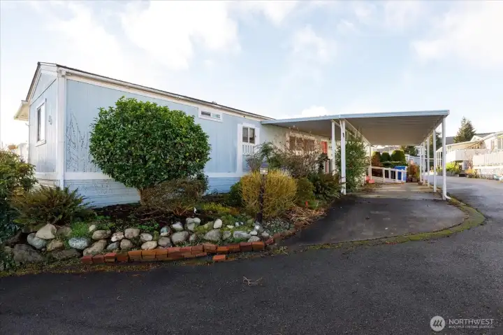 Designed for ‘55 & better,’ this home is just minutes from beaches, shops, & miles of protected waterfront trails...& a better value cannot be found in Oak Harbor! Experience the magic of salt-water & mountain views + unrivaled sun rises. With 1084 perfectly appointed square feet, highlights include: an open-concept floor-plan, 3 bedrooms spaced for privacy, 2 full baths, an open kitchen with adjacent breakfast nook & built-in storage. The living room is spacious & comfortable--complete with vaulted ceilings, picture windows & cozy pellet stove. More? A front deck with access ramp, a covered back porch overlooking a phenomenal city & water view, forced air heat, storage inside & out & all appliances convey. The monthly space rent covers water/sewer/garbage a clubhouse--creating low maintenance living within a friendly community. When you add in the double carport, storage shed with power & work bench? Wow! This well-loved home is perfect for full-time living or a part-time escape...come and unlock this opportunity!