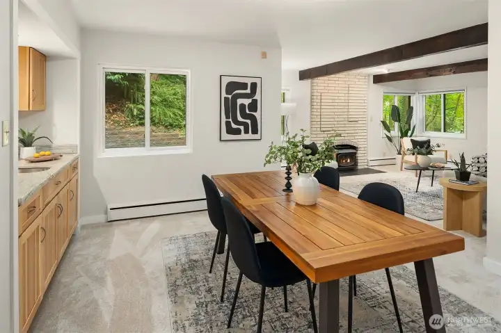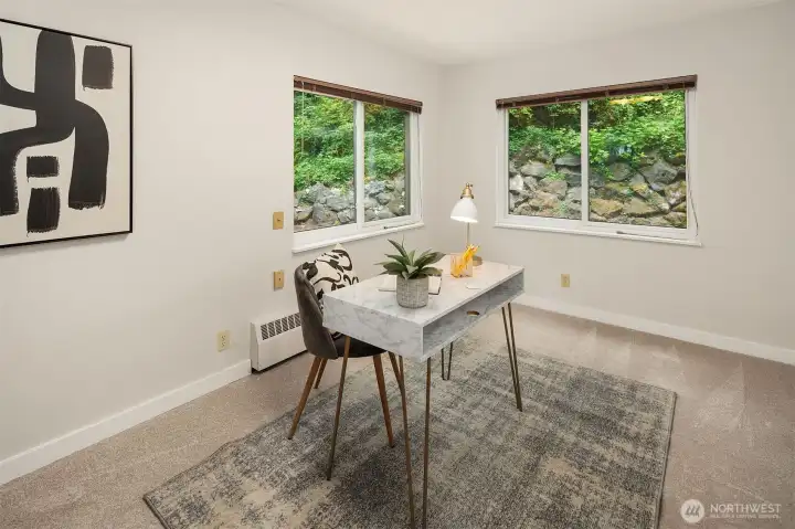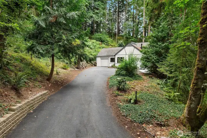 Among the trees you will find this sanctuary! Enjoy absolute privacy yet everyday conveniences are just minutes away. Designed for ease and flow, the main level lives beautifully with a serene primary suite, kitchen, office & laundry. New paint, new carpet, & thoughtful updates set a warm, welcoming tone. The kitchen anchors the home with granite counters & stainless appliances, opening to light-filled spaces perfect for gathering. Upstairs, a whimsical secret room invites imagination & curiosity, along with 3 more bedrooms. The secluded backyard offers total tranquility, New roof, driveway & retaining walls make this a rare blend of storybook charm & modern convenience. just minutes from I-90, top-rated schools, shopping & dining.