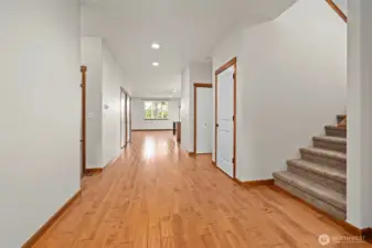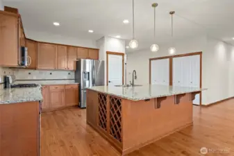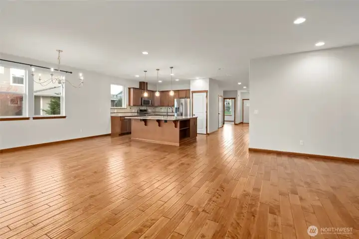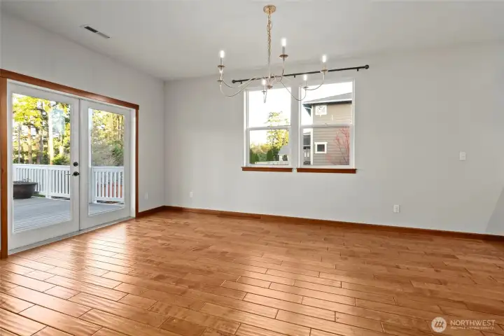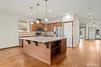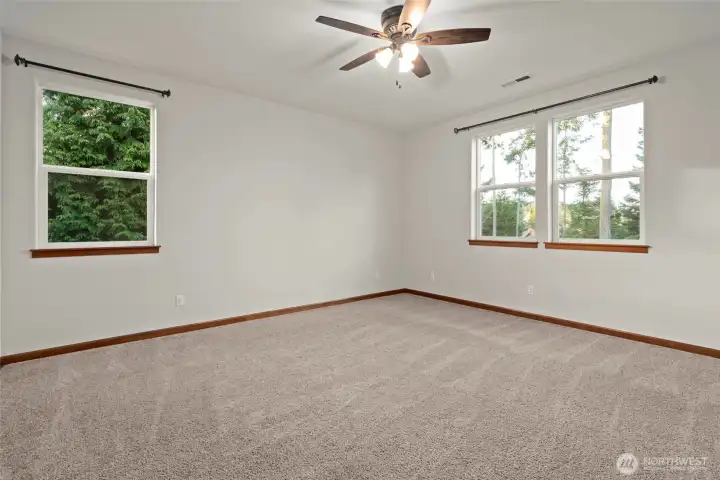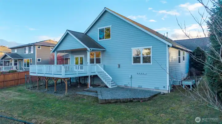 Fabulous 4 bedroom 3 bathroom home located on Whidbey Golf Course! Main floor features hardwood floors and gourmet kitchen complete with gas range, island with eat in bar, and stainless appliances. Open concept living room adjacent to dining area with french doors leading to covered deck ideal for gatherings. Primary bedroom with luxurious tile shower and large walk-in closet with laundry room access. Additional bedroom downstairs off entry. Upstairs features bonus room with projector and screen ready to use, additional bedrooms, and full common bathroom. Oversized three car garage and fully fenced backyard. Golf cart access to Whidbey Golf Course. Make this gem of a home yours!