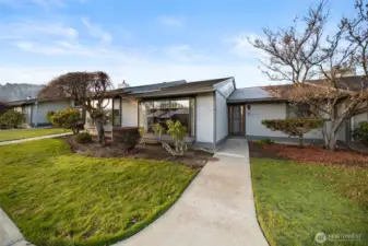 Welcome to easy, one-level living in this beautifully maintained two bedroom, two bath condo set within exceptionally well kept grounds. Designed for comfort and convenience, the functional floorplan offers effortless flow between living spaces. Both bedrooms are generously sized, including a spacious kitchen. This home also features a two-car garage and private courtyard space, ideal for outdoor seating, morning coffee, or a small gardening space. Enjoy the sparkling pool and inviting clubhouse, ideal for relaxing or social gatherings. With low-maintenance living and pride of ownership throughout the community, this condo is a perfect blend of comfort, lifestyle, and convenience.