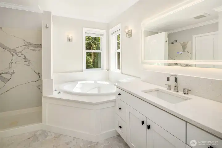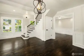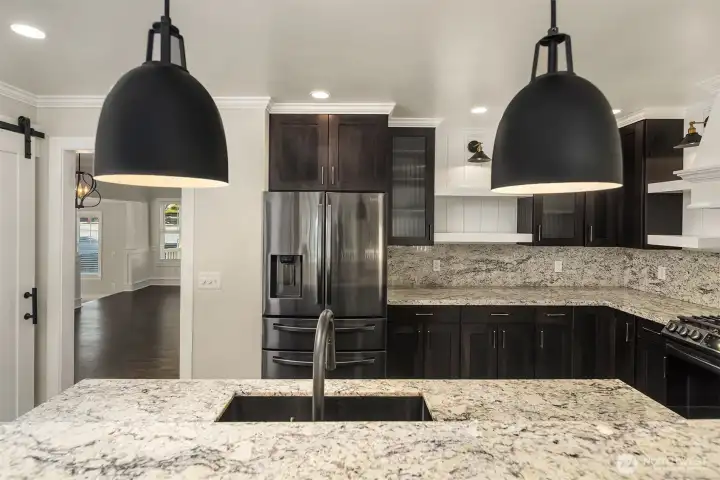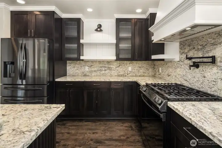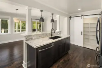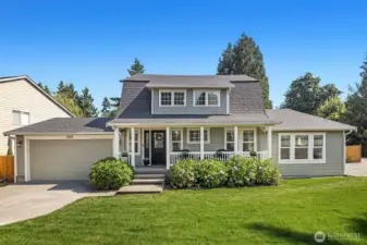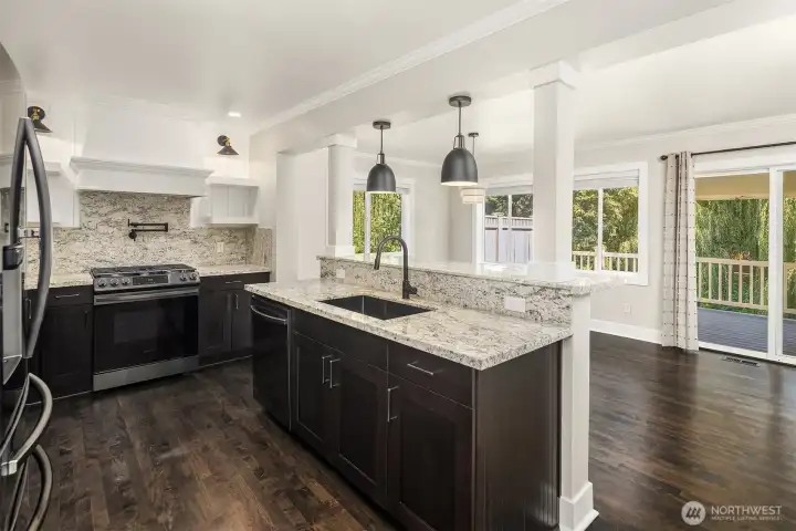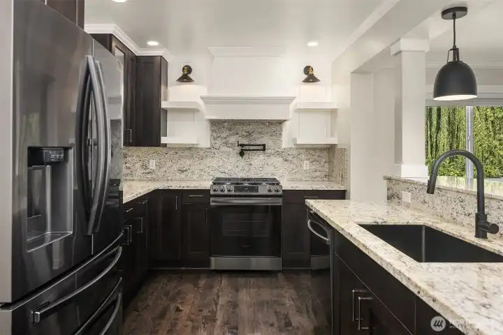 Tranquilly situated on a scenic spring fed koi pond with floating dock & waterwheel, this elegant Dutch Colonial Revival exudes old world charm embodied in a modern new luxury home! Boasting 3228sf, 4 beds & 2.5 baths on sprawling .23 acre lot in ultra convenient Kennydale. Fully updated & masterfully crafted with sophisticated designer finishes throughout ~ ebony hardwoods, crown moldings, tray ceilings, wainscoting, upscale lighting & iron rail open staircase. Stunning showcase kitchen with custom range hood & dining island. Main floor primary with lavish en suite. Wrapped in windows with abundant natural light. A year round outdoor oasis with spacious covered porches. Huge garage & ample parking. Short walk to grade school & playgrounds!
